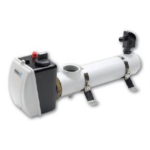 Электронагреватель в корпусе из кислотостойкой нержавеющей стали, оснащен термостатом, однополюсным реле защиты от перегрева и датчиком потока, 3 kW